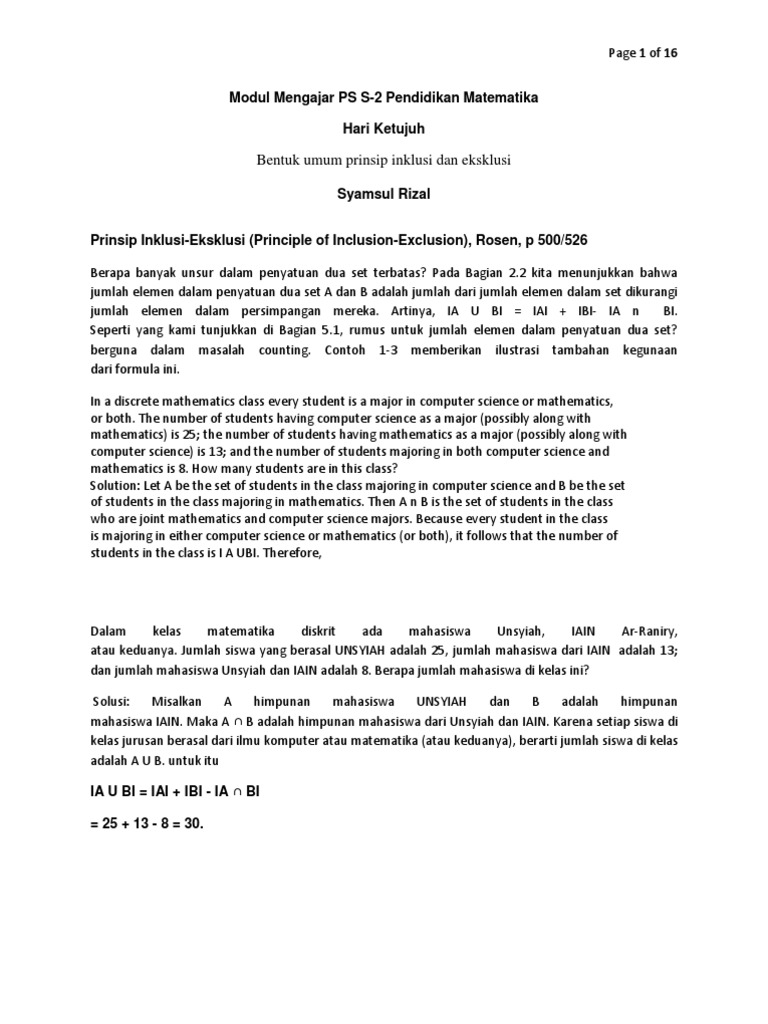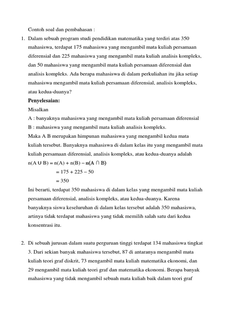 Contoh soal prinsip inklusi dan eksklusi. Check spelling or type a new query. Maybe you would like to learn more about one of these? We did not find results for: