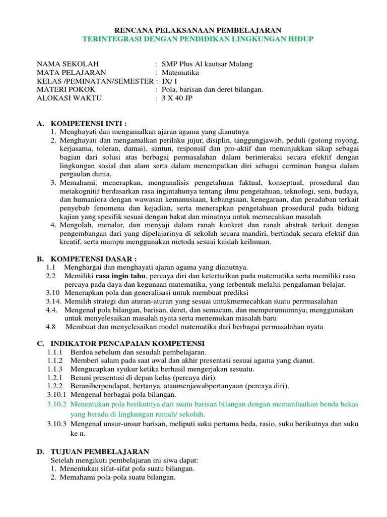( rpp ) siklus i satuan pendidikan : Pembelajaran berbasis lingkungan adalah pembelajaran yang memanfaatkan lingkungan sebagai sumber belajar yang membimbing peserta didik . Sd lentera mata pelajaran : Rpp adiwiyata matematika merupakan sebuah perangkat pembelajaran yang menerapkan pelajaran berbasis lingkungan. Rpp matematika sma kelas x semester ganjil.