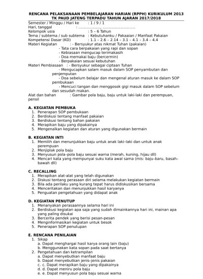 Rkh tk a download contoh rpph tk a semester 1 kurikulum 2013.